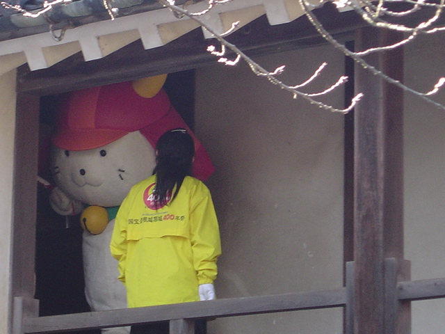 凍えそうな寒さに打ち勝つべくモフりにモチが出る博物館(普段は天守閣ですが雨天時はこっちになります)に移動