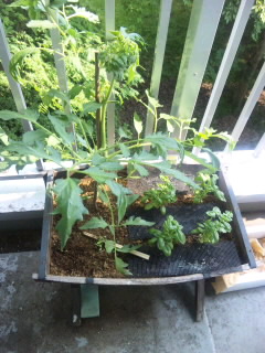 ベランダで育ててるトマトとバジル
